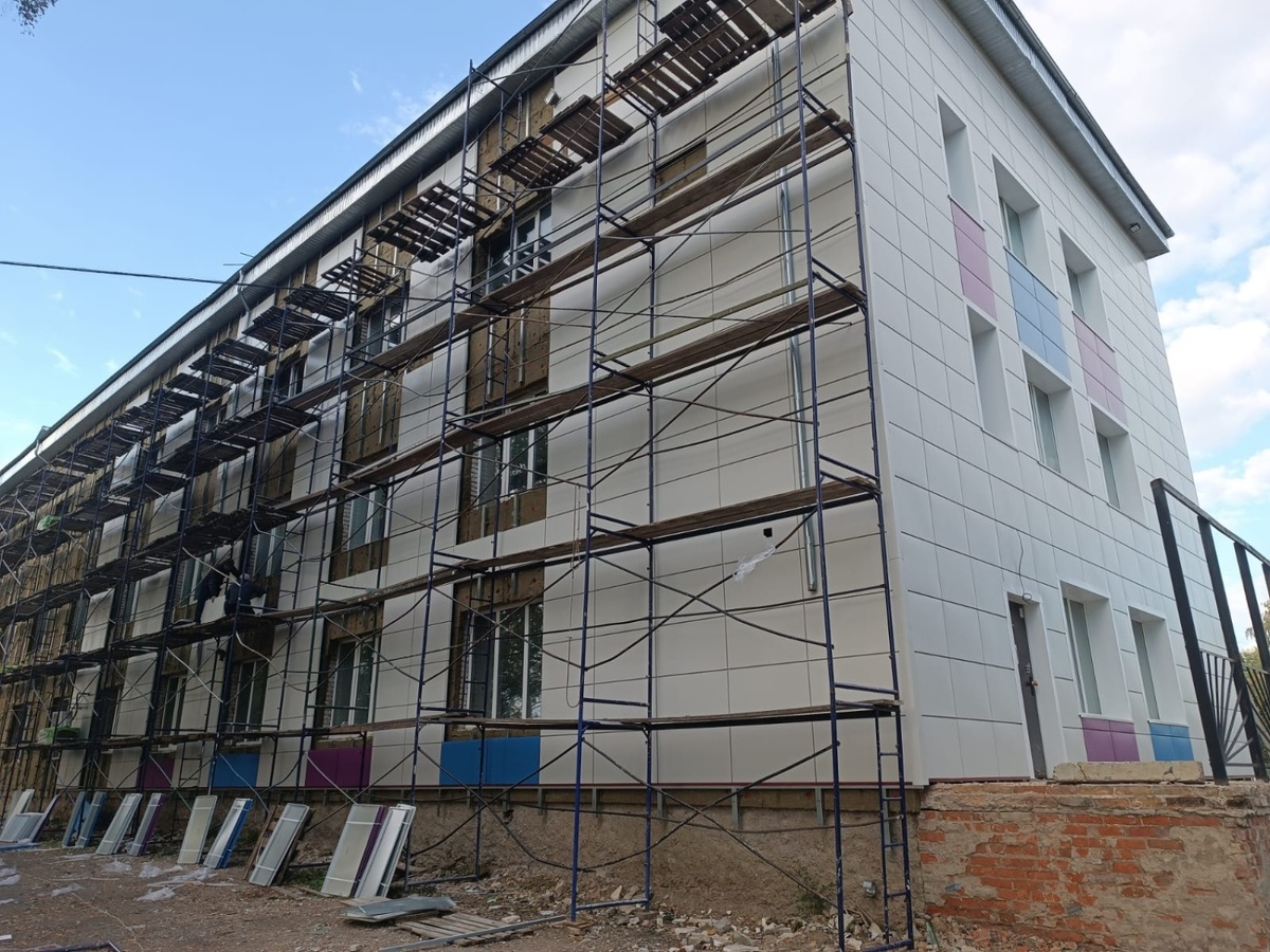 В Иссинской участковой больнице активно продолжается капитальный ремонт фасада терапевтического корпуса. По данным Министерства здравоохранения Пензенской области, на сегодняшний день выполнено уже 90% работ по утеплению и облицовке здания. Модернизация ведется в рамках нацпроекта «Продолжительная и активная жизнь». Проект реализуется при поддержке губернатора Пензенской области Олега Мельниченко. Как сообщила главный врач Иссинской участковой больницы Юлия Тивикова, в настоящее время специалисты завершают монтаж металлокассет, параллельно проводится утепление фасада. Также полностью демонтирована старая входная группа. По ее словам, внутренние отделочные работы в помещениях выполнены примерно на 75%. «Капитальный ремонт терапевтического корпуса предусматривает значительное обновление внешнего облика здания с использованием современных и технологичных строительных материалов. Это позволит повысить комфорт для пациентов и сотрудников, а также продлить срок службы здания», – подчеркнула