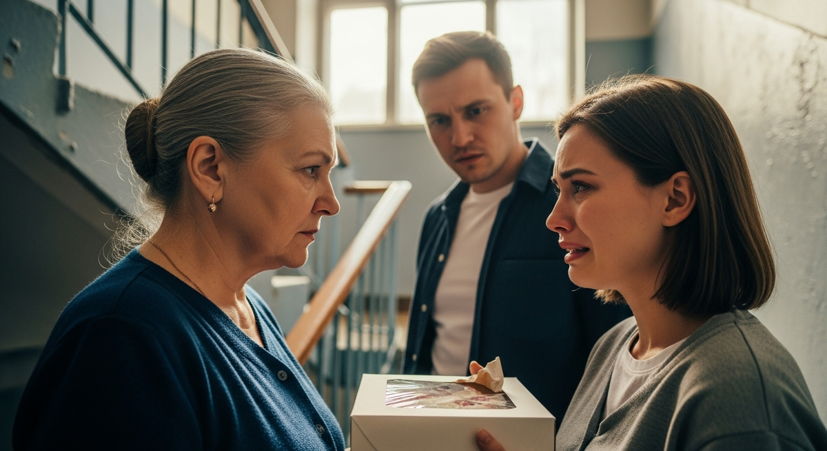 Свекровь посмотрела на коробку, потом перевела взгляд на лицо Марины. В ее глазах было что-то холодное, острое, как осколок стекла.