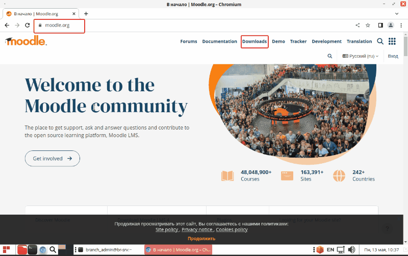 Запустите сервис moodle на сервере HQ-SRV: На время настройки переведите selinux в режим уведомлений. Для этого измените содержимое конфигурационного файла: # nano /etc/selinux/config Заменив текст SELINUX=enforcing на SELINUX=permissive. Затем выполните: # setenforce 0 Для удобства установки и настройки Moodle подключаемся по SSH c HQ-CLI к HQ-SRV ssh sshuser@192.168.100.2 -p 2024 Установка веб-сервер Apache: # dnf install httpd Запуск службы httpd и добавление ее в автозагрузку: # systemctl enable httpd --now Для проверки успешной установки Apache в браузере HQ-CLI ввести http://<IP_сервера HQ-SRV>. Установка php и дополнительных расширений (Необходимых для развертывания Moodle) # dnf install php php-mysqlnd php-pdo php-gd php-mbstring php-zip php-intl php-soap Настраиваем php.ini: # nano /etc/php.ini Вносим изменения в конфигурационный файл php.ini Раскомментировать и изменить значение max_input_vars=6000 Если тяжело искать можно прописать max_input_vars=6000 в начале файла /etc