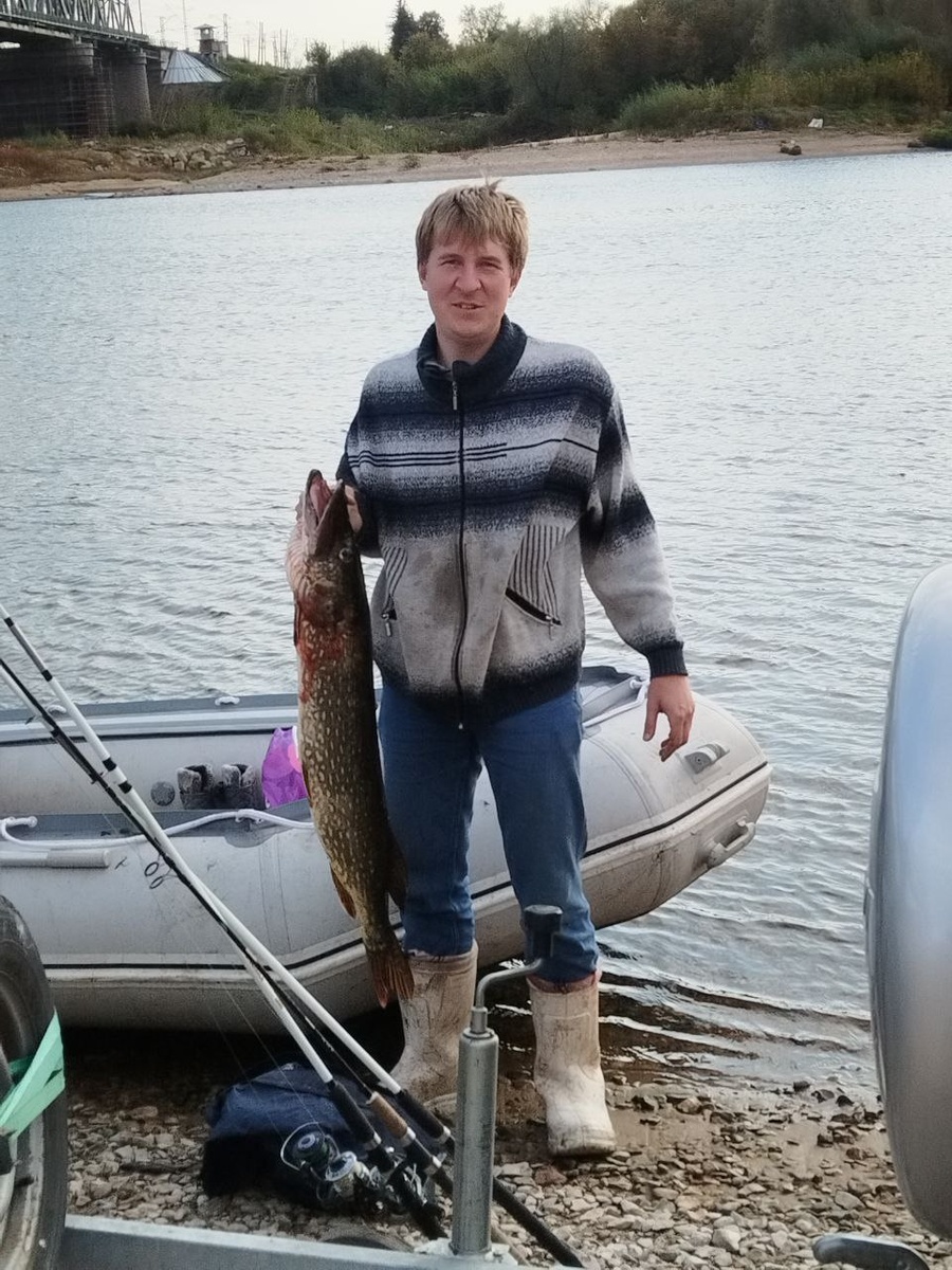 Рыбак поймал огромную Щуку на о. Ока, на фото видны её размеры!
