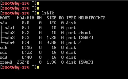 - При помощи трёх дополнительных дисков, размером 1Гб каждый, на HQ-SRV сконфигурируйте дисковый массив уровня 5