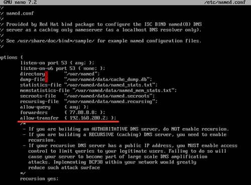 1. На HQ-SRV открываем конфигурационный файл DNS сервера /etc/named.conf