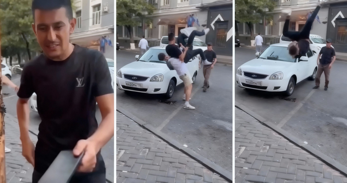 Марат, видимо решив, что одержал верх, как и подобает его менталитету принялся добивать сбитого с ног противника. Но в этот момент друг Олега, двадцатипятилетний Сергей, занимавшийся борьбой, мгновенно подскочил сзади, схватил Марата за пояс и бросил его на землю своим коронным приёмом.