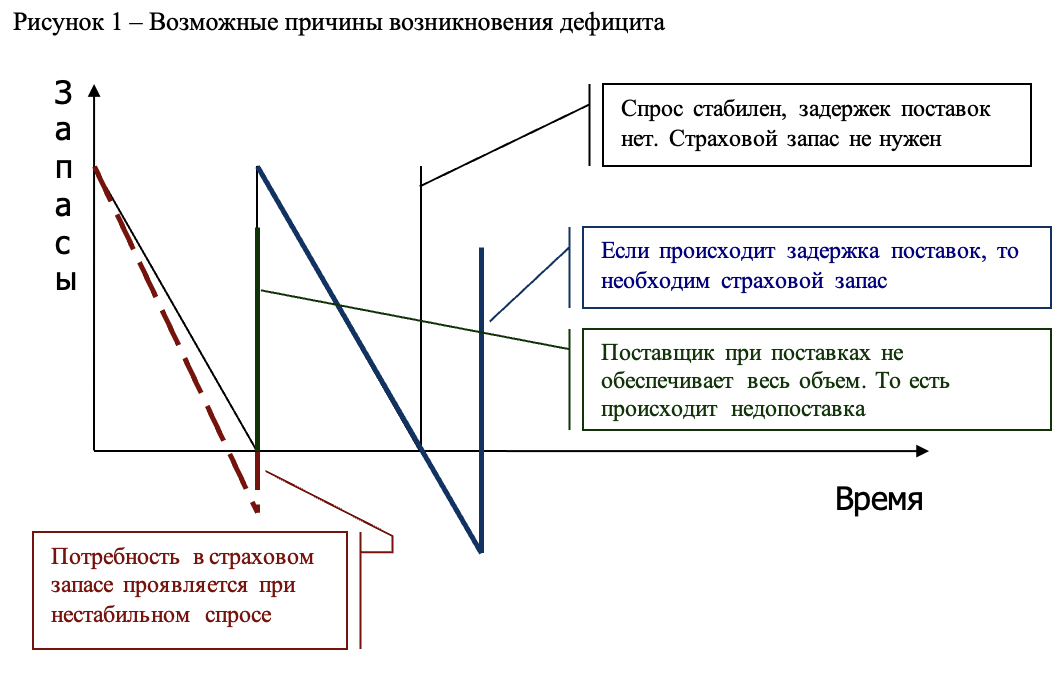 Страховой запас позволяет снизить риск возникновения дефицита в случае проявления непредвиденных ситуаций.