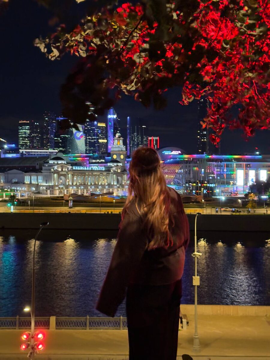 Вечером тут все по-особенному: подсветка, играющая разными цветами, виды на мегаполис со склона высокого берега Москвы-реки