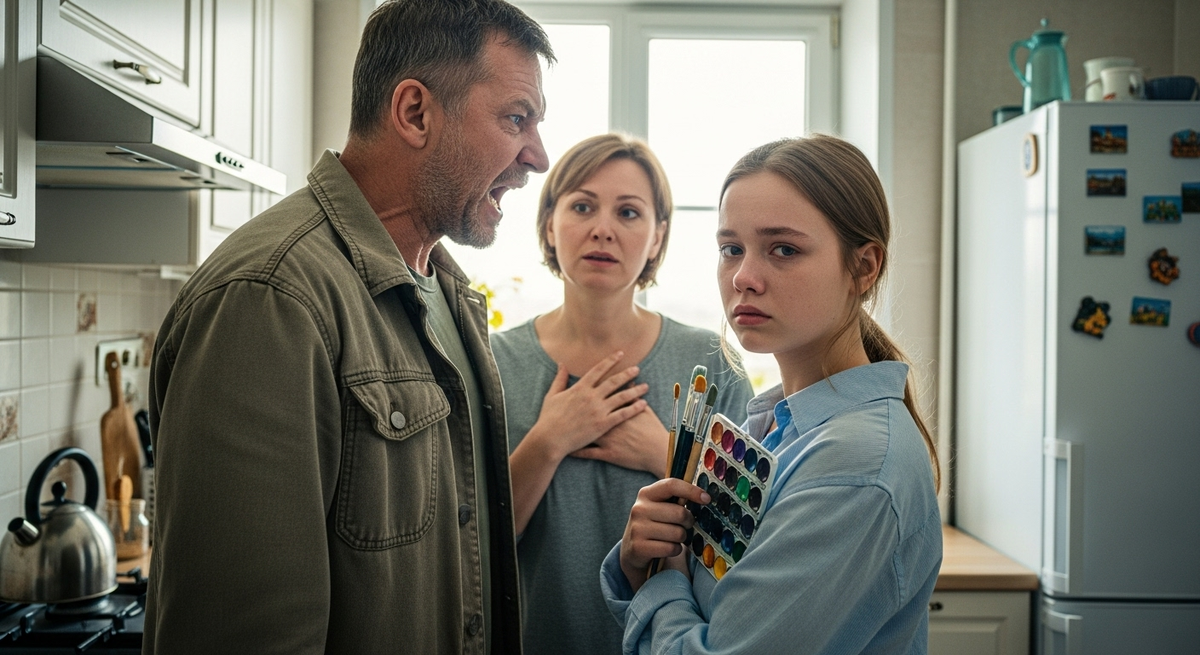 — Куда ты поступишь? — он усмехнулся, наливая в стакан кефир. — Туда своих пропихивают, детей богатых. А мы кто? Простые работяги. Забудь. Я сказал — пойдешь на курсы бухгалтеров. Через полгода будет профессия, устроишься в контору, будешь как человек жить, а не картинки рисовать.