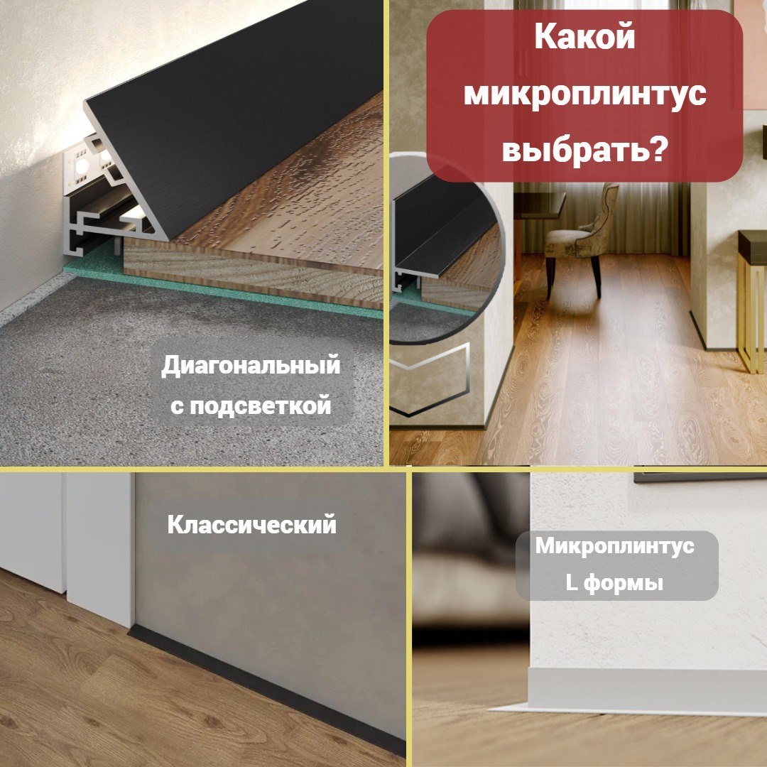 Какой алюминиевый микроплинтус подойдет именно вам⁉ Вопрос: L-образный, наклонный или классический — какой выбрать? Ответ: ✅Классический — универсальное решение для покрытий толщиной от 5-5,5 мм, ширину следует выбирать в зависимости от компенсационного зазора у стены. Идеально подходит для керамической плитки, SPC ламината, паркетной доски. Это узкий профиль, который крепится на пружины-распорки в зазор между полом и стеной, не заходя на стену и создавая лаконичную линию. На сайте: https://www.polvdome.ru/catalog/plintusa_i_porogi/mikroplintus/klassicheskiy/ ✅L-образный — лучший друг ламината! Надежно компенсирует его сезонные «движения». Подходит и для других покрытий толщиной от 5,5 мм (вместе с подложкой). Защищает стены от швабры. В основном крепится на пружины, но есть и с монтажом на клей к стене. На сайте: https://www.polvdome.ru/catalog/plintusa_i_porogi/mikroplintus/l-obraznyy/ ✅Наклонный — для создания вау-эффекта! Идеален, если задумали скрытую подсветку пола. Крепится