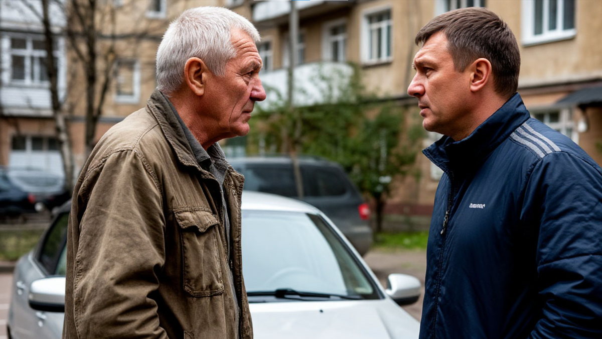 Иван Иванович, седой мужчина в выцветшей куртке, размахивал руками перед капотом белой Лады Гранты. За рулём сидел Сергей Петрович, лет сорока пяти, с напряжённым лицом и сжатыми кулаками на руле.