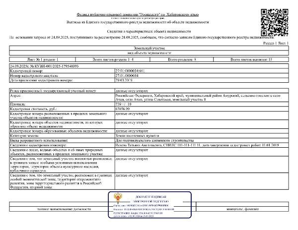 Название: Земельный участок с кадастровым номером 27:01:0000034:661 площадь 739 по адресу Российская Федерация, Хабаровский край