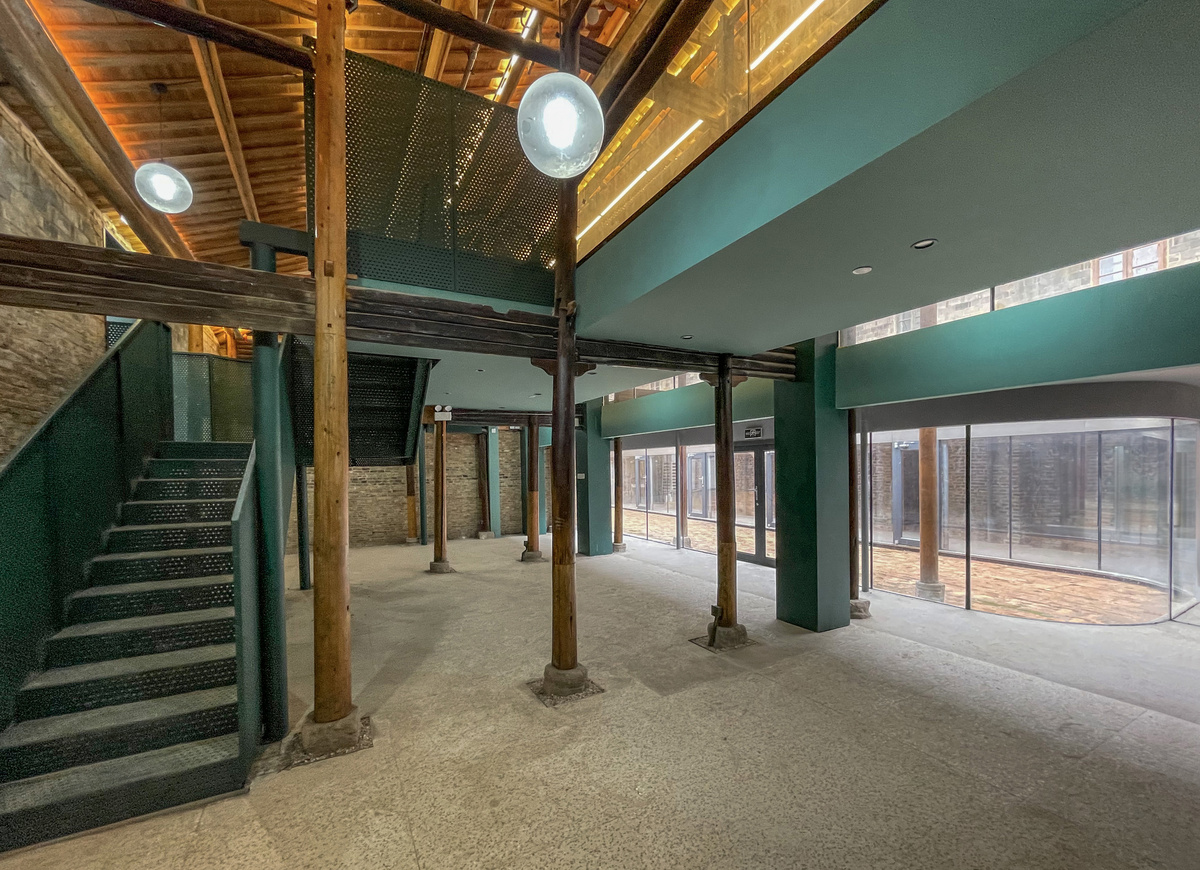 Реконструкция, магазин, Цзиндэчжэнь, Китай. Реконструкция здания бывшей фарфоровой фабрики в самом сердце исторического района Императорских печей города Цзиндэчжэнь осуществлялась с сохранением исторического наследия. Этот метод предполагает размещение архитектурных вставок внутри и рядом с существующими зданиями для оживления объекта, сохраняя при этом его исторические элементы. Центральным элементом проекта является современный архитектурный памятник, органично вписывающийся в центр исторического окружения. Стеклянное здание с трёх сторон окружают новый ресторан и старые фарфоровые мастерские. Оригинальные деревянные и кирпичные конструкции сохранились нетронутыми, а новые архитектурные вставки модернизируют старые здания, придавая им современный вид. На уровне площади кирпичное мощение двора плавно переходит от внешнего пространства к интерьеру здания, усиливая связь между внутренним и внешним пространством и соединяя старое и новое. Кирпичное мощение превращается в целостный ланд