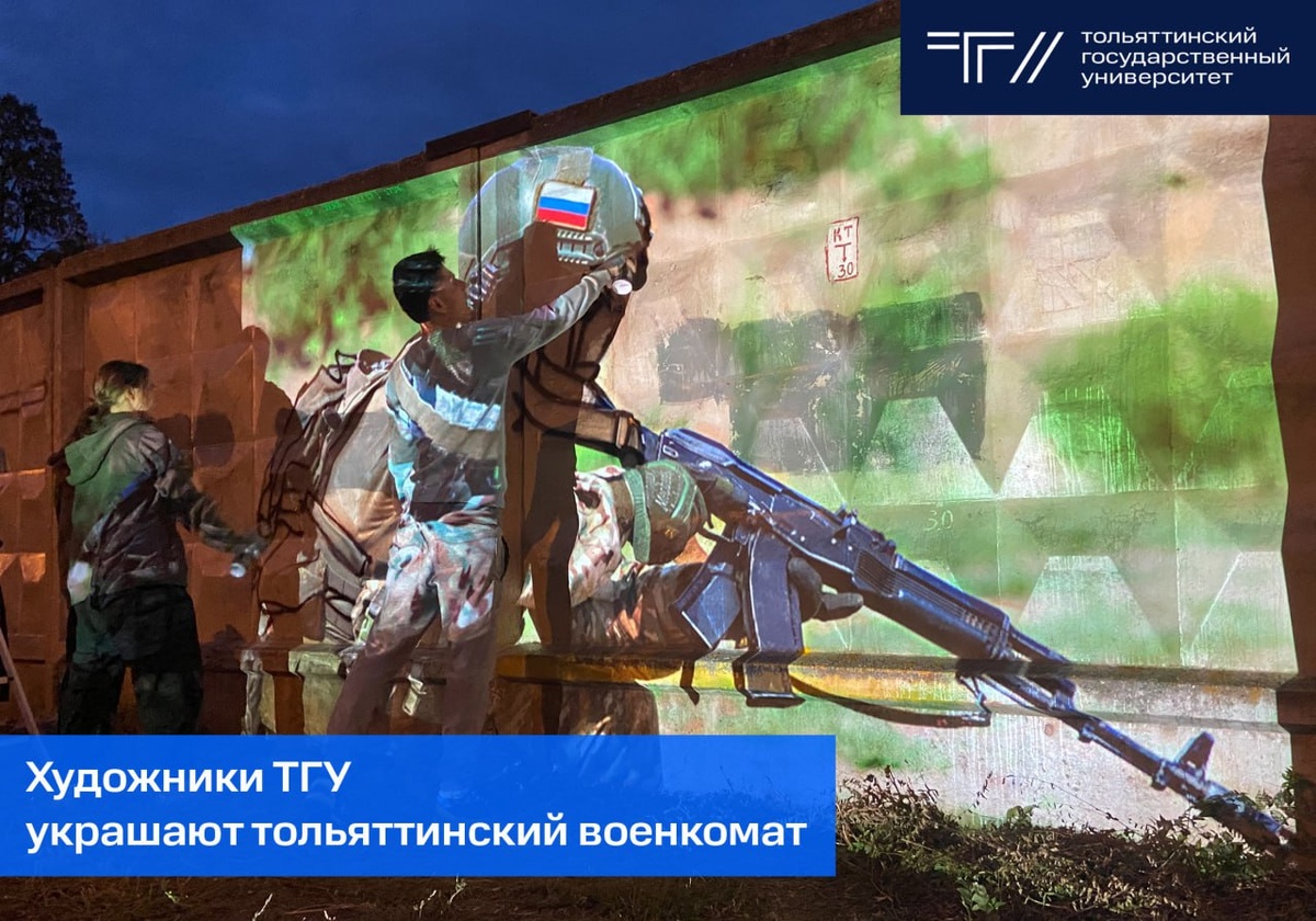 ⭐️ Преподаватели и студенты ТГУ приступили к созданию патриотического граффити на ограждении военного комиссариата на улице Ушакова в Центральном районе города. Работа ведётся в рамках волонтёрского проекта. Подробности👈