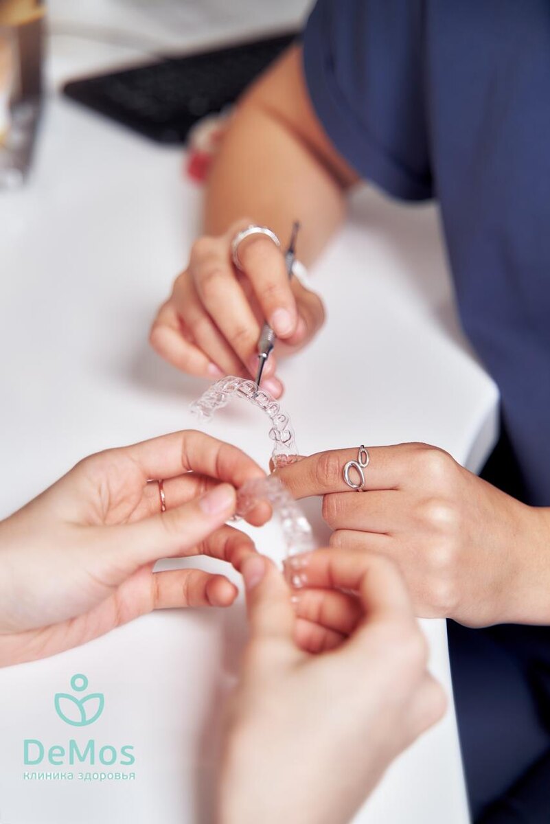 1. Регулярная чистка элайнеров • Мойте каппы два раза в день — утром и вечером, одновременно с чисткой зубов. • Используйте мягкую зубную щётку и прозрачное мягкое мыло или специальные очищающие средства. • Избегайте зубной пасты с абразивными частицами — она может поцарапать поверхность элайнеров.