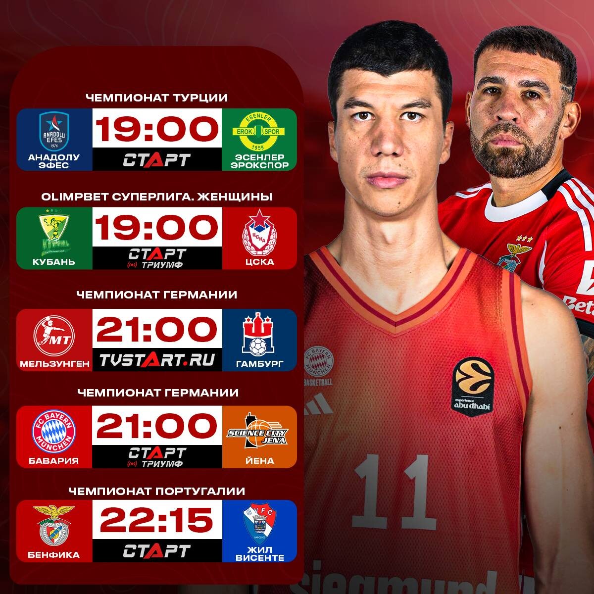 🏀⚽️🤾♂️ День командных видов спорта! Баскетбол, гандбол и футбол. Сегодня наш эфир адаптирован почти под любого зрителя! Все трансляции в прямом эфире найдете на TVSTART.RU 🖥️ 🛒 Наше приложение в Google Play 💙 Наше приложение в RuStore 🛒 Наше приложение в App Store
