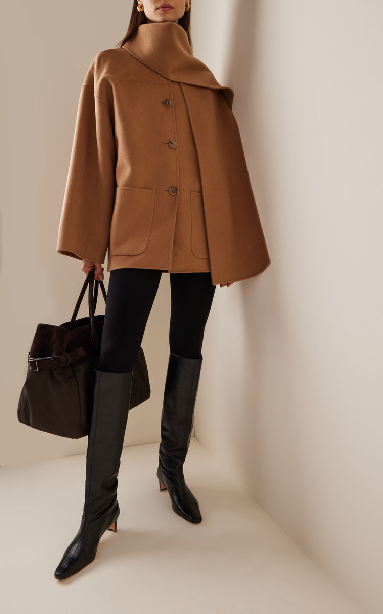 Но во многих образах этот шарф, палантин идёт как отдельная деталь. С одной стороны это даёт возможность носить пальто в двух вариантах: с ним и без. Но смотря на фото, кажется что всё это так не стабильно, громоздко и местами точно не про удобство. А ведь это тоже очень важно для верхней одежды.