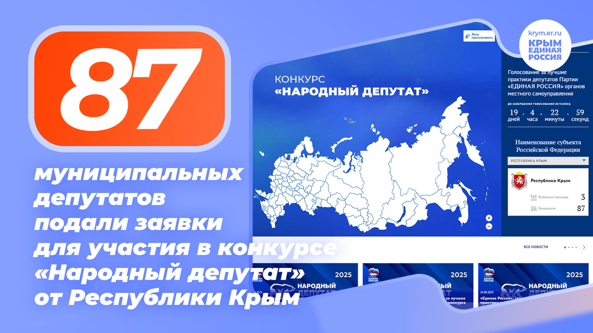 Залог формирования перспективного будущего для страны и, в частности, Республики Крым заключается в работе муниципальных депутатов на местах, в их умении слушать и слышать своих избирателей, комплексно подходить к решению всех возникающих вопросов и задач. Такое мнение выразил первый заместитель Председателя Государственного Совета Республики Крым, руководитель фракции «Единая Россия» Андрей Козырев. «От нашей республики конкурсные заявки подали 87 муниципальных депутатов из городов и районов Крыма. В своих презентациях они представили действенные методы работы с жителями, которые позволяют разрешить задачи самого разного характера. Начиная от инфраструктурных вопросов, заканчивая мероприятиями, направленными на сближение и формирование открытого диалога с людьми. Уверен, что конкурс «Народный депутат» позволит выявить уникальные практики работы депутатов на местах, а также представить их на всю страну», - подчеркнул первый вице-спикер крымского парламента. Напомним, отдать голос за од