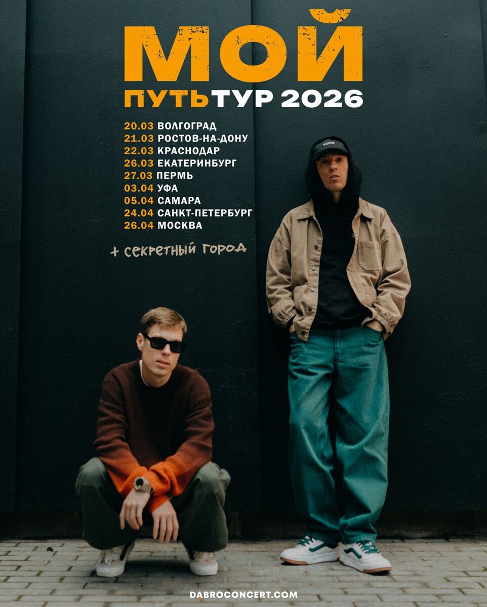 Концертный тур 2026 «МОЙ ПУТЬ» Большие залы и арены! Это новый виток истории группы, стань её частью🔥 Билеты - dabroconcert.com Будет один секретный город. Есть догадки?