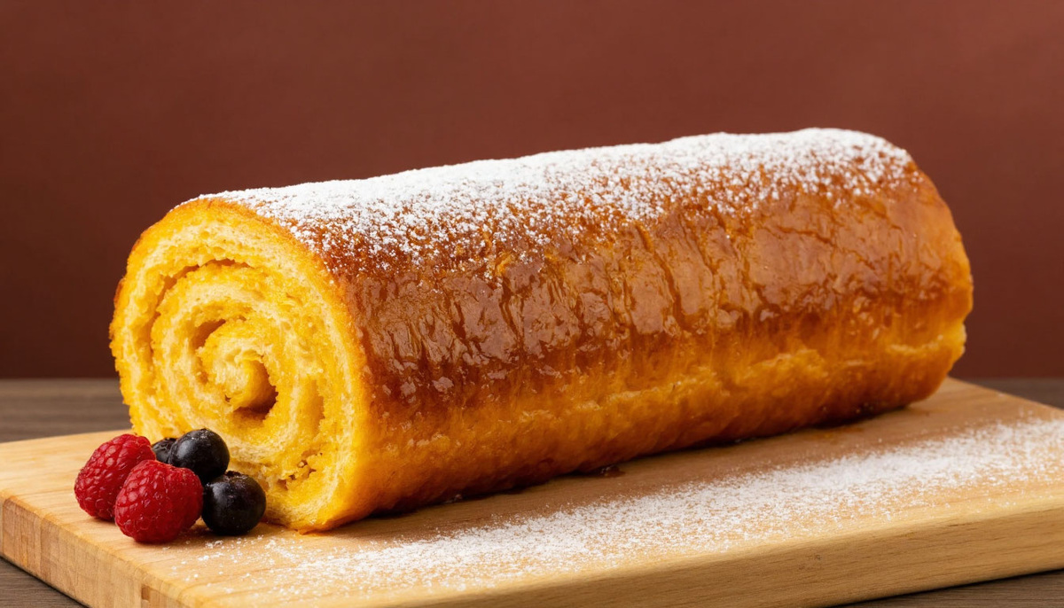 - Снова сверните рулет плотным, аккуратным свёртыванием.