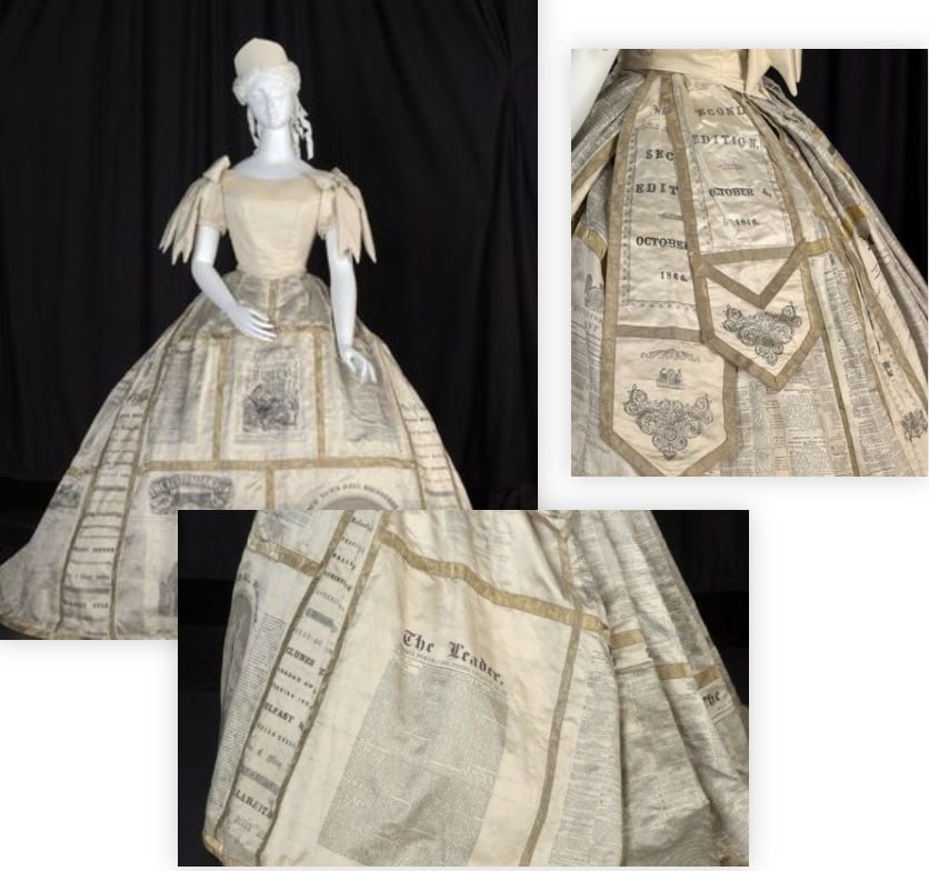В 1866-м Матильда Баттерс, жена австралийского политика, надела на костюмированный бал Мельбурна платье с напечатанными страницами местных газет.
