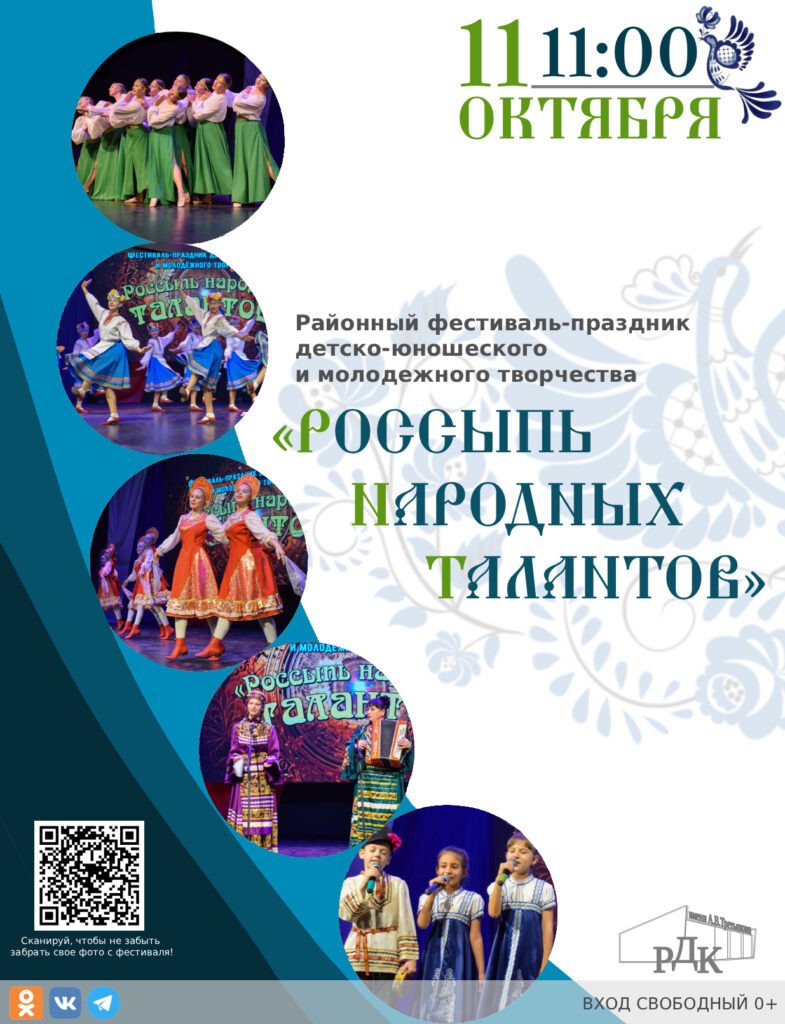 Районный фестиваль-праздник детско-юношеского и молодежного творчества «Россыпь народных талантов» приглашает