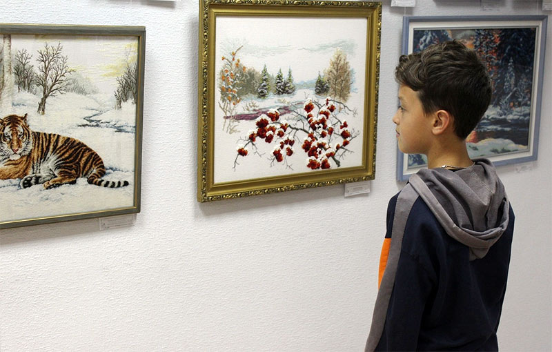 Выставка «Мир, вышитый своими руками» (0+) продлится весь октябрь.