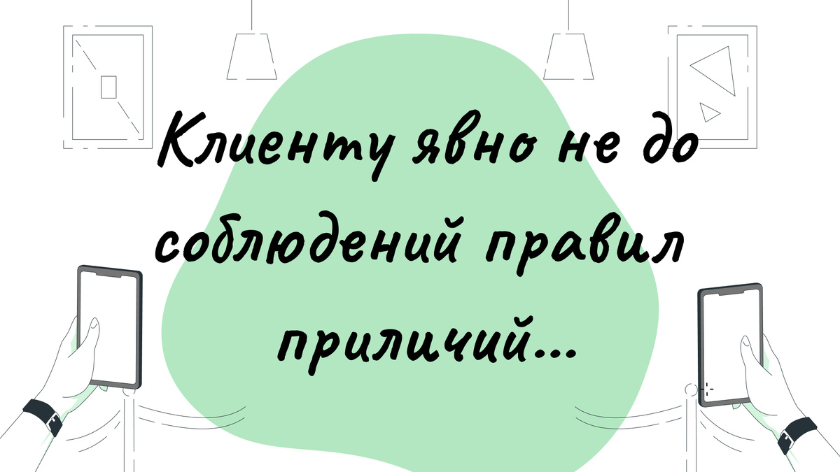 Клиент не соблюдает социальный ритуал: он не представляется и не реагирует на приветствие собеседника. Здесь можно выдвинуть две гипотезы. Первая связана с воспитанием клиента и его портретом: он может быть невежливым, также возможно негативное отношение к профессии риэлтора, но по какой-то причине вынужден связаться и получить консультацию. Клиенту явно не до соблюдений правил приличий... Вторая гипотеза связана с вводным словом «мммм»: слова агента переключил человека от его мыслей к реальному диалогу. Косвенно это подтверждает пауза после сформулированного запроса «Я квартиру хочу». Заполнение паузы ч