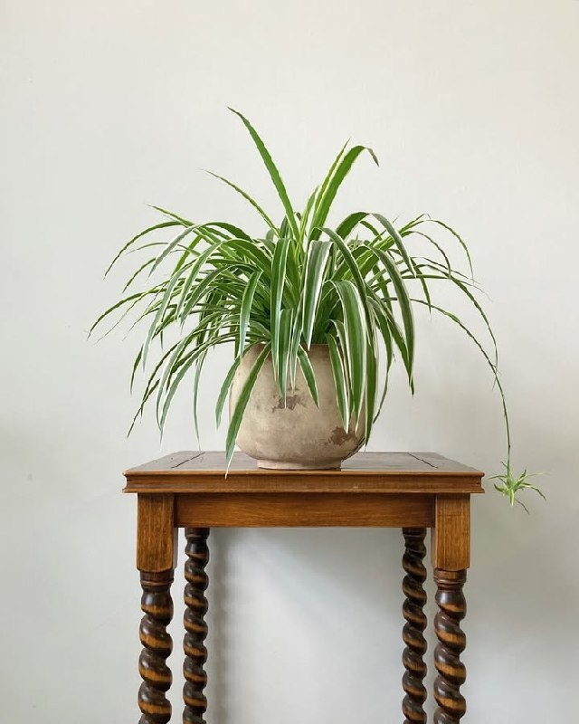🌿 Хлорофитум — неприхотливое ампельное растение с длинными, узкими листьями насыщенного зелёного цвета, часто украшенными белыми или жёлтыми полосами, что придаёт ему свежий и динамичный вид, идеальный для создания живых каскадов. Его дочерние "детки" на тонких стеблях добавляют шарма и позволяют легко размножать растение. Хлорофитум предпочитает яркий рассеянный свет (терпит полутень, но постепенно теряет декоративность), умеренный полив с просыханием почвы и тепло. Это отличный выбор для подвесных кашпо, полок, где он привносит тропическую эстетику. Также считается, что хлорофитум хорошо очищает воздух от токсинов.