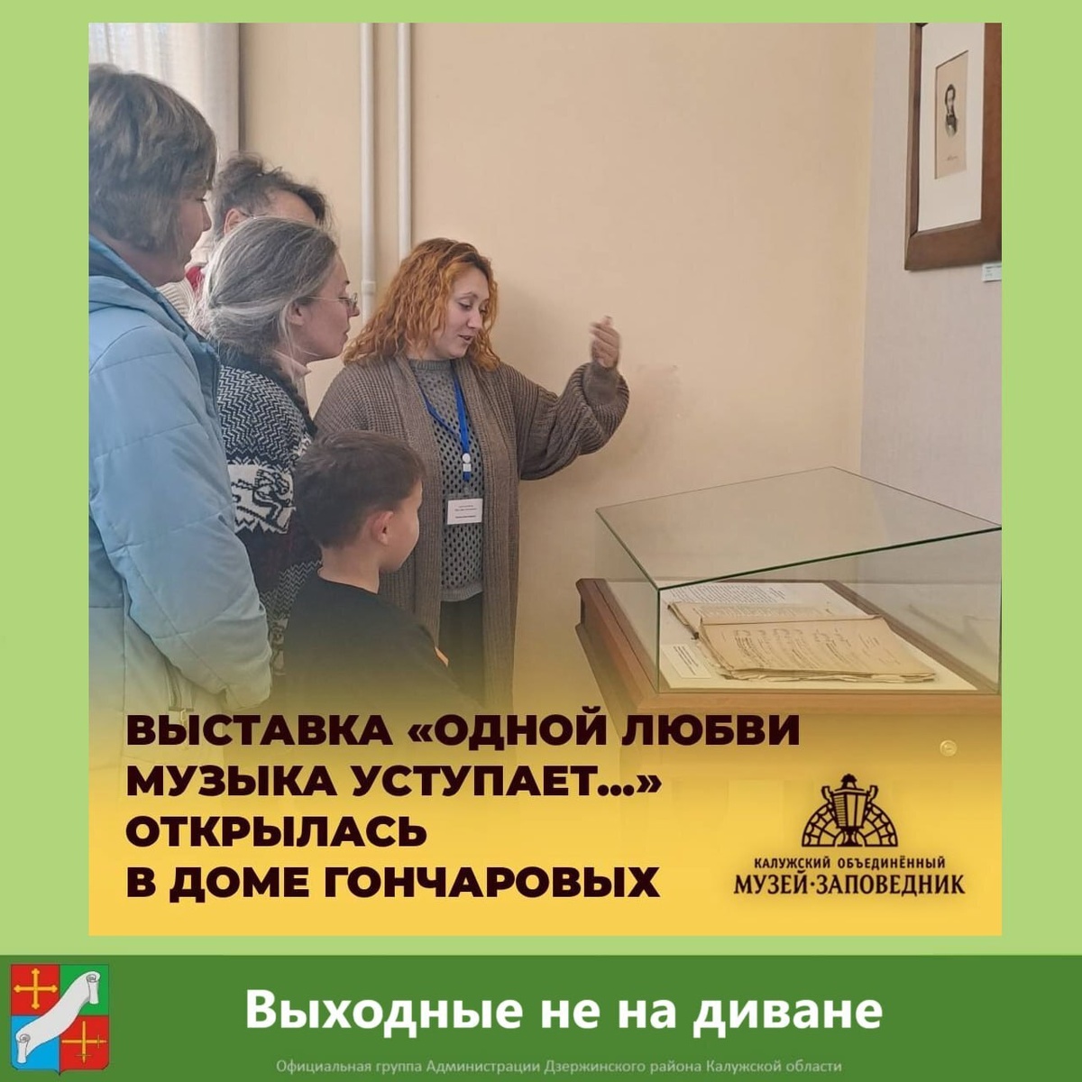 📢Предлагаем несколько вариантов отдыха. Для детей и их родителей 🔸 В субботу и воскресенье, 4 и 5 октября, музей-заповедник "Полотняный Завод" приглашает на выставку альбома с нотами песен и романсов XIX-нач. XX вв. с автографами членов рода Гончаровых. Экспозицию можно увидеть в часы работы музея с 9.30 до 18.00. Для всей семьи 🔸В субботу, 4 октября, ледовая арена «Угра» приглашает на сеанс массового катания. Начало в 18.15. Для обучающихся и взрослых: В субботу и воскресенье, 4 и 5 октября вас ждут 🔹Кондровский кинотеатр «Восьмерка» на фильм «Мой друг, кот и Пушкин» (6+). Начало сеанса в 13.00. 🔹Товарковский кинозал «Синий лис» на фильм «Нахимовцы. Янтарный берег» (12+). Начало сеансов в 9.30 и 15.50. 📍Приятных выходных!