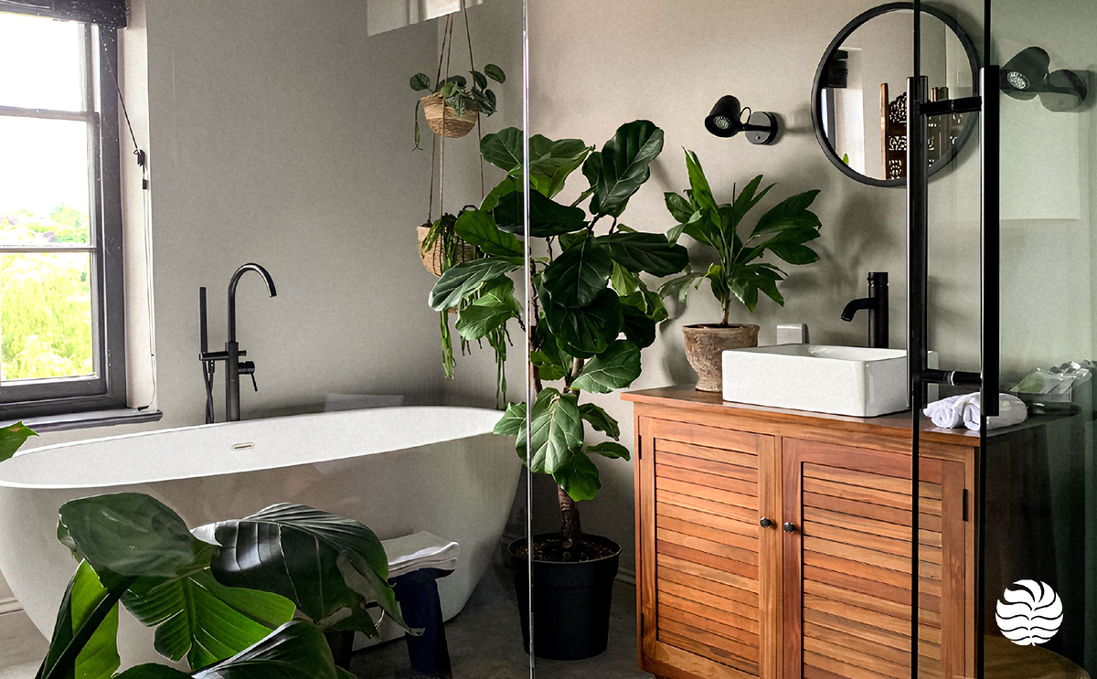 • Вертикальное озеленение — отличное решение для небольших ванных: используйте вьющиеся растения, такие как эпипремнум или плющ.