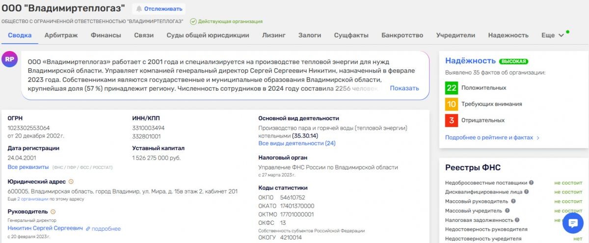 По данным на январь 2025 года, задолженность компании "Владимиртеплогаз" перед кредитными и финансовыми организациями составляла около 3 млрд рублей. В зону обслуживания компании входят города Владимир, Ковров, Гороховец, Киржач, Собинка, Лакинск, а также посёлок Красная Горбатка Селивановского района, посёлок Содышка, деревня Пенкино Камешковского района и другие населённые пункты Гороховецкого и Селивановского районов. Организация накопила долги из-за кредитов, которые брала, чтобы покрывать старые. Это превратилось в порочный круг, а повышение ключевой ставки до 21% окончательно выбило компанию из колеи. Было решено передать часть доли в уставном капитале ООО из государственной собственности Владимирской области в муниципальную собственность 14-ти территорий, являющихся зоной присутствия компании.Таким образом планировалось стабилизировать ситуацию. При этом контрольный пакет акций остался у правительства региона. Сейчас во Владимирской области стартует отопительный сезон, и в предд