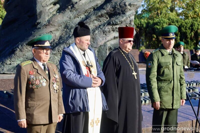 У мемориала воинам Белорусского пограничного округа прошёл торжественный митинг, в котором приняли участие действующие военнослужащие, ветераны Гродненской пограничной группы и представители духовенства. Гродненский пограничный отряд был сформирован в мае 1944 года. Его основу составили бойцы и командиры, обеспечивавшие охрану тыла действующих армий. В июле того же года эшелон из 70 вагонов доставил в Гродно личный состав, вооружение и служебных животных. 3 октября 1944 года пограничному отряду вручили Боевое Знамя части. Сегодня Гродненская пограничная группа – одно из крупнейших соединений органов пограничной службы Беларуси. Она охраняет государственную границу с Польшей и Литвой общей протяженностью более 300 километров. Из них почти 160 километров – это белорусско-польский рубеж, а чуть более 154 километров принадлежит белорусско-литовскому участку. Охраняемый участок пересекается важными транспортными путями республиканского и международного значения. Техническое оснащение гродне