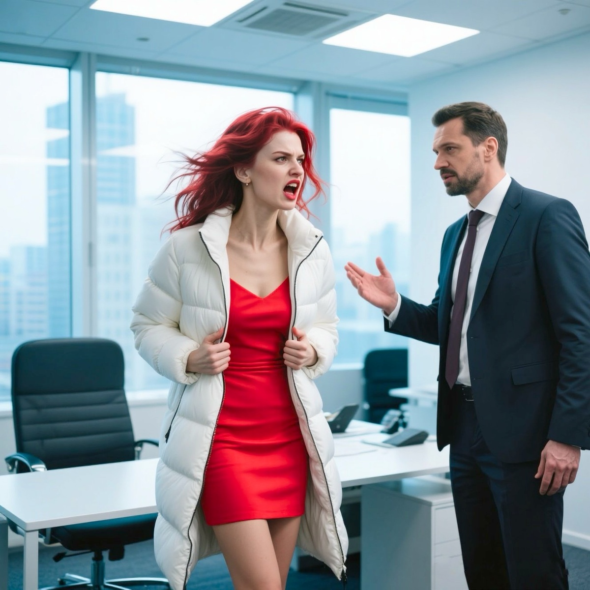 — Мне плевать на твоё совещание! — она шагнула в кабинет, её каблуки гулко стучали по паркету. — Это важнее!