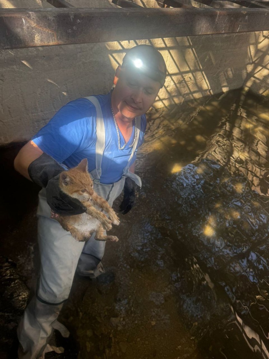 В Новороссийске самые добрые спасатели вытащили котенка из ливневой канализации