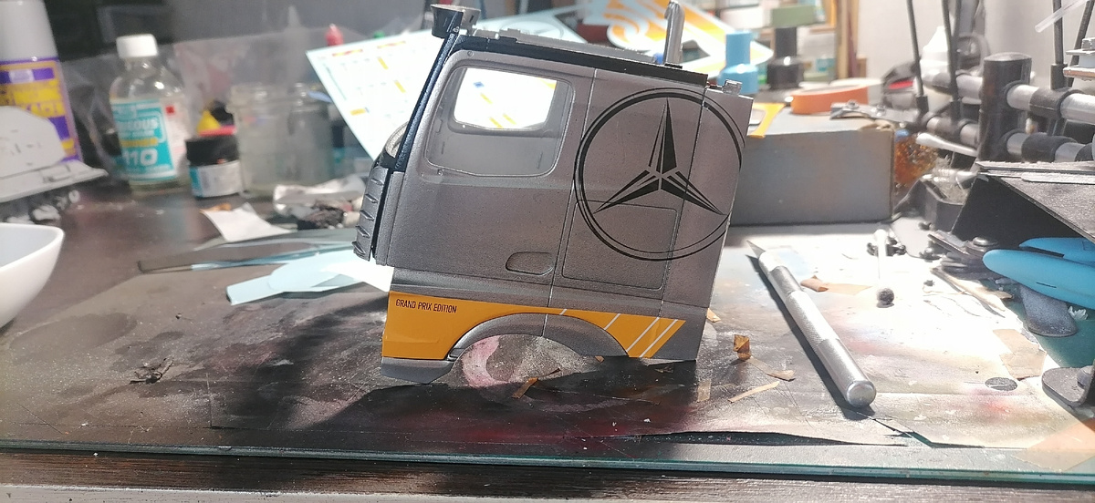Всех приветствую! Ну что, вчерашнюю красоту нужно обклеивать деталями. Самое сложно было сделать аккуратно эмблему. Она почти составная. Почему почти? Потому что если так можно выразиться круг отдельно звезда отдельно. Это не одна наклейка. Точнее одна но не натодной плоскости. В общем удалось все сделать. Следующее испытание ждало с рыжей полосой под передним бампером. Но тоже справился. Сама декаль спокойно гнется по краям. Осталась еще одна длинная рыжая полоска. Вот куда она идет не пойму. В целом получается прям очень даже классно. То чего я и хотел. Следующий этап будет окраска топливных баков и сборка рамы.