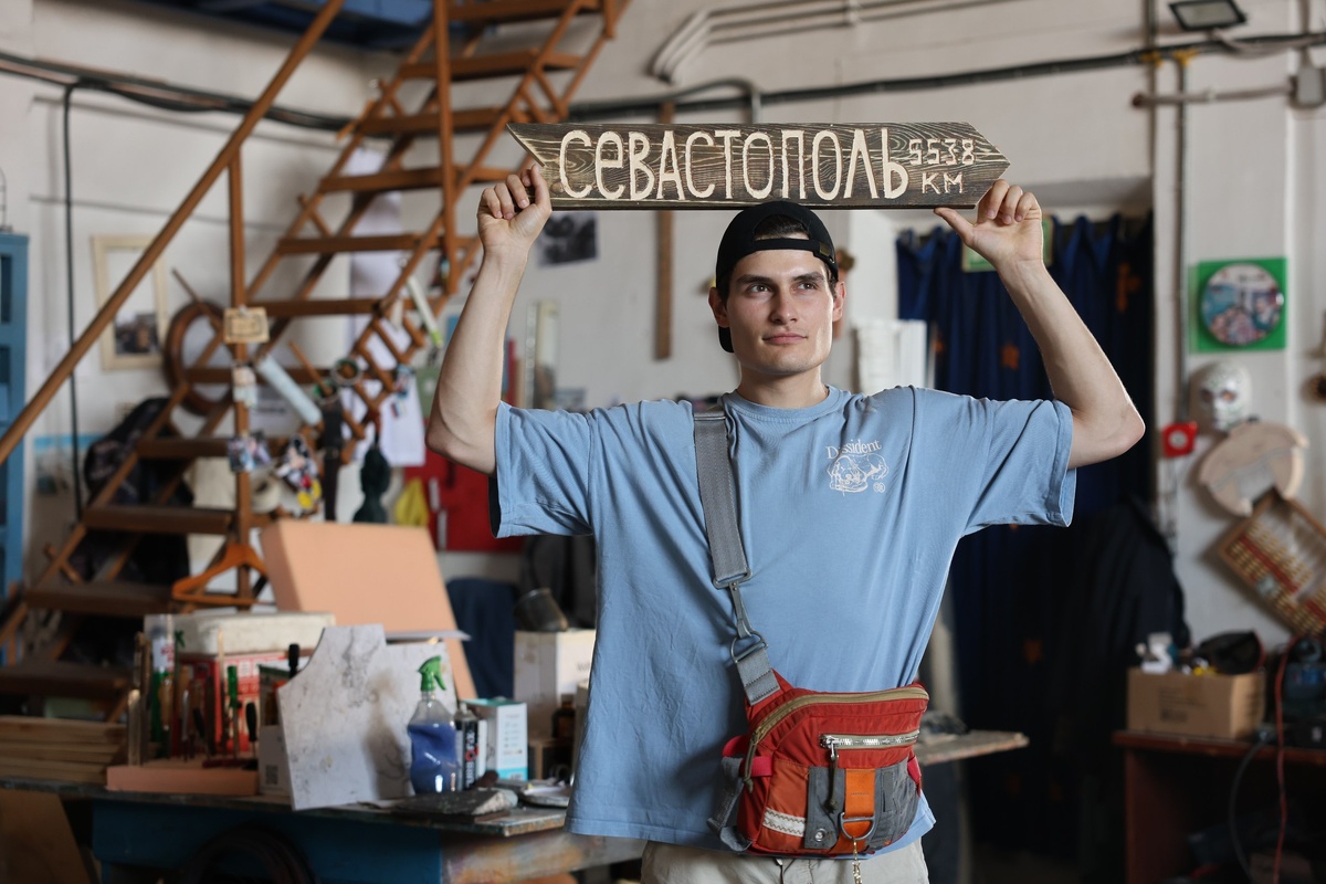 Артист театра Луначарского установил указатель с Севастополем в самом северном морском порте России