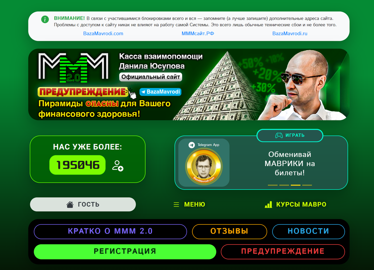мммсайт рф вызывает у многих лёгкое дежавю — ведь оригинальная МММ, запущенная Сергеем Мавроди, уже давно в анналах финансовых пирамид. Этот «второй виток» позиционирует себя как «касса взаимопомощи», «сообщество доверия», «лидер нового движения», обещая участникам доходы за оказание помощи. Проект часто используется разные домены и адреса — чтобы маскироваться и избегать блокировок. При этом на официальных страницах очень скудно указано, кто стоит за проектом юридически, нет прозрачных отчётов, лицензий, видно, что всё держится на заявлениях и обещаниях. ⚠️ ВАЖНО! Проект, который прошел проверку.