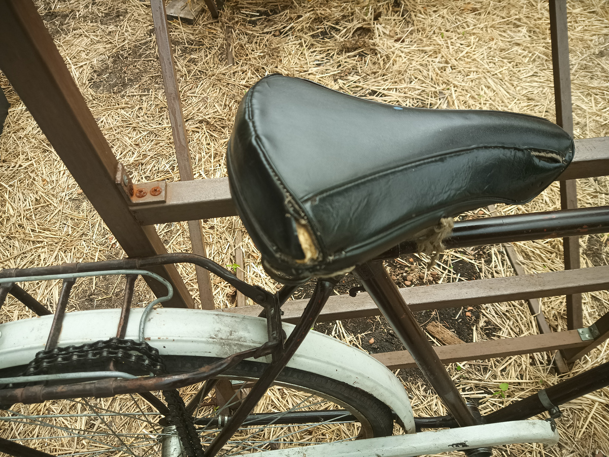 Родной чехол был уже изрядно потрепан жизнью. Благо на Озоне есть чехлы. В итоге цена вопроса (май 2025 г.) 380 руб. Чехол неплохой, кож. заменитель, но сам пошив на 3 с минусом. Подошёл для советского велосипеда УРАЛ Удалось натянуть без проблем. Сначала в чехол укладывается «родная» поролоновая губка, благо она еще в хорошем состоянии. Само сидение нужно отчистить от грязи. Далее вставляем сиденье так, -сначала передняя часть сиденья вставляется в чехол, все расправляется - после этого уже одну боковую вставляем, расправляем и натягиваем чехол на другой бок. В итоге, получилось все без замачивания чехла в воде, как рекомендовали в интернете. Можно, вообще, заменить на новое сиденье, что я и сделал вначале - до перетяжки. Новое седло - это, конечно, кЕтайский кЕтай, металл мягкий, пришлось под гайки положить кузовные шайбы. В итоге, спустя 3 месяца катания решено, в скором будущем, заменить это недоразумение на родное перетянутое седло #сиденье для велосипеда урал #замена чех