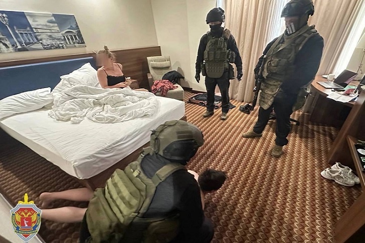 Судя по видеокадрам, предоставленным силовиками, коммерсант был задержан в гостинице, когда находился в компании дамы. При обыске оперативники нашли крупную сумму денег и паспорта.