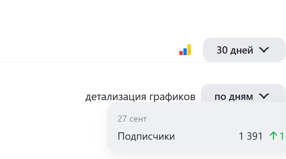 Красным цветом сверху подсвечено ухудшение, зеленым - улучшение. Допустим визитов стало меньше по сравнению с предыдущим днем, а время посещения - больше.