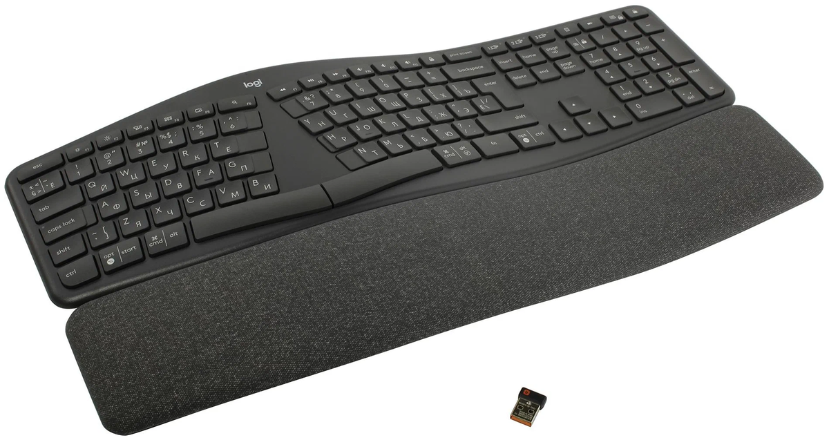 Клавиатура - устройство, значение которого часто недооценивают. Кажется, мол "ну печатает - и ладно, чего от нее еще хотеть". Однако если вы хотя бы раз покупали "правильную" клавиатуру, то знаете, насколько сильно она меняет вообще весь опыт использования компьютера. Проблема в том, что "правильная" - она у каждого своя. Бывает так, что стандартные решения не устраивают, впрочем, производители клавиатур время от времени выпускают особую дичь. Ну так давайте смаковать. Эту клавиатуру Logitech выпустила совсем недавно, в 2021 году. Она напоминает старые клавиатуры, предназначенные для десятипальцевого ввода - блок клавиш разделен на две половины, между которыми находится пустое пространство. При этом она имеет "припухлость" в центре, подставку под запястья, и разделенный надвое пробел. По задумке, такая конструкция позволяет быстрее вводить текст двумя руками, так как у каждой руки есть своя половинка клавиатуры. Несмотря на странный вид, у подобных клавиатур есть свои поклонники. Прав