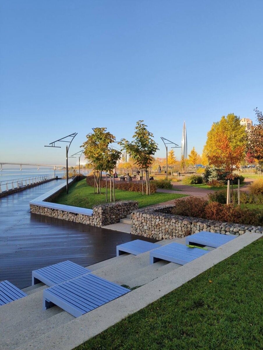 Осенняя набережная Большой Невки Здесь есть дорожки для пешеходов и велосипедистов, уютные скамейки, качели и шезлонги с видом на залив. Красные арт-объекты-шары создают яркий акцент и идеально подходят для атмосферных фотографий. Пространство стало новым местом для неспешных встреч и прогулок в любое время года. 📍 ЖК Три Ветра, м. Беговая #локация Подпишись на Питер Бесплатно