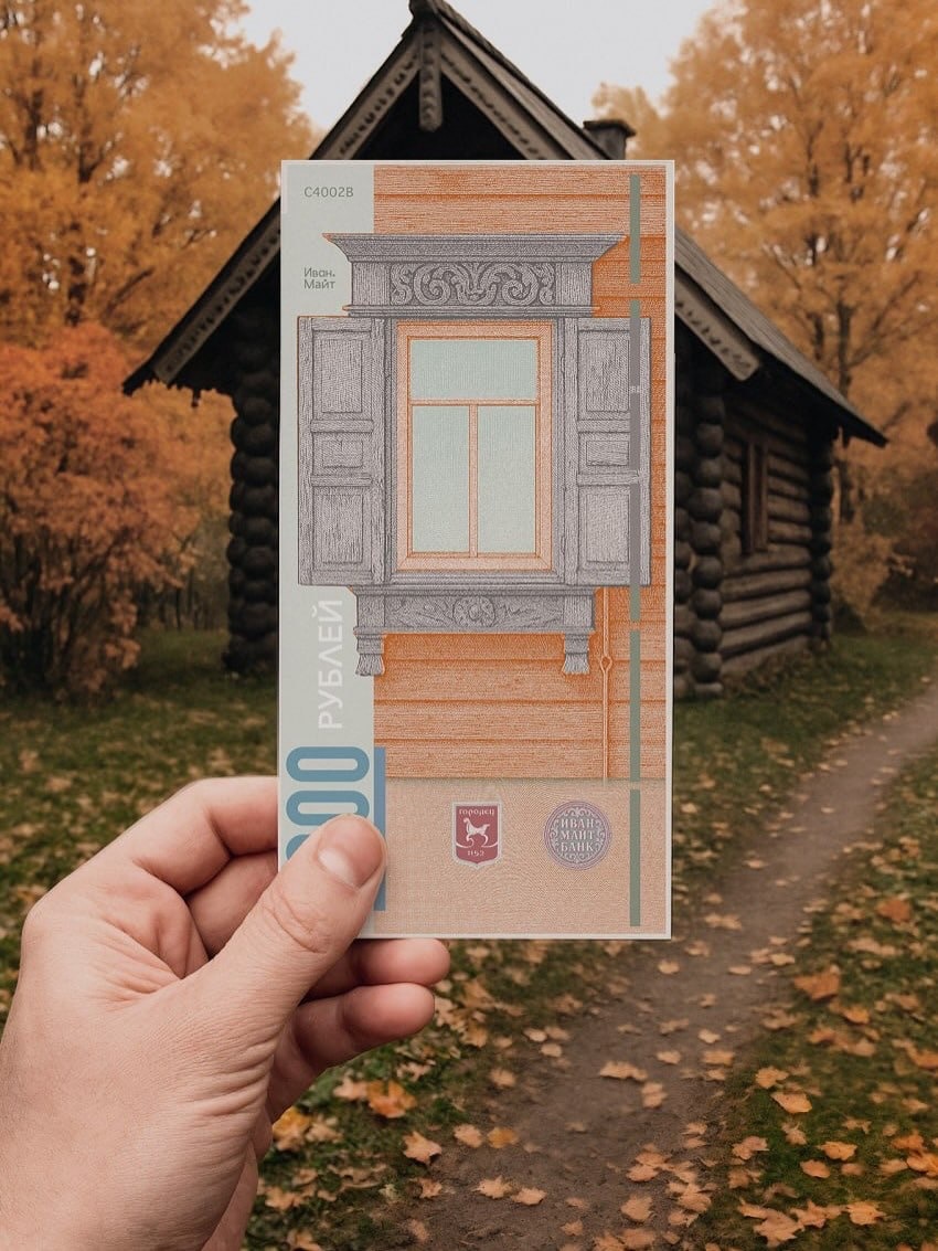 «Наличные» Если деньги наличные, то почему бы в дизайне не использовать старые добрые наличники)? Вдохновением послужили наличники таких города как, Томск, Городец, Иваново и Кострома. Есть в дереве все же свой шарм. За материал для работы отдельное спасибо @nalichniki Хорошие бы деньги получились? Как думаете?