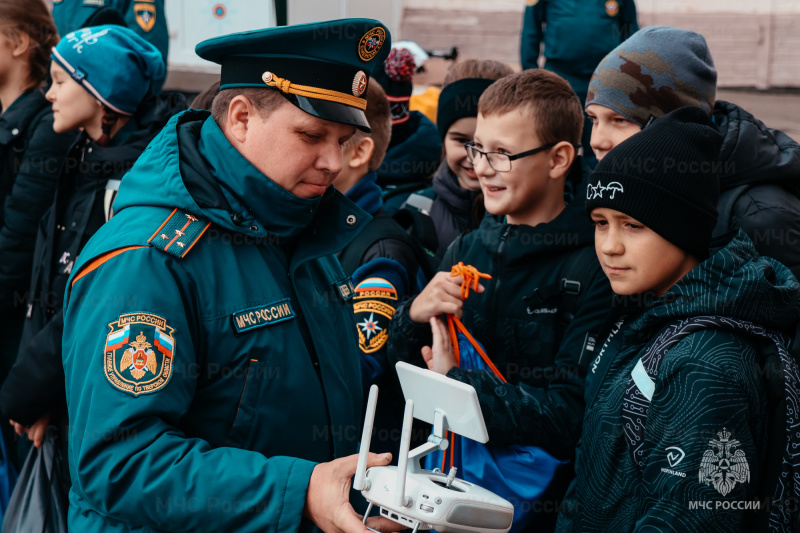 Также для ребят развернули оперативный штаб и показали, как происходит информационный обмен с места происшествия. Особый интерес у ребят вызвали беспилотные летательные аппараты. Детям показали как происходит управление БПЛА.