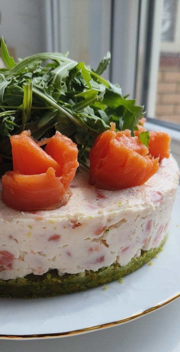 Знаете, в чем главная магия этого чизкейка? Его не нужно печь. Это блюдо для тех случаев, когда хочется блеснуть, а не простоять у плиты весь вечер. Оно холодное, собранное, с характером. Представьте: рассыпчатая, с ореховыми нотками основа из шпината, нежнейшая сливочная масса с яркой зеленью и тонкими слайсами малосольного лосося сверху. Это не просто закуска. Это заявление. Когда я впервые подала его гостям, воцарилась тишина. А потом прозвучал вопрос: «Ты точно сама это сделала?». Лучший комплимент. 🍣 Почему этот чизкейк — ваше тайное оружие: · Готовится на опережение. Его делают за 5-6 часов до подачи, а то и накануне. · Обманчиво прост. Все слои собираются за 20 минут, главное — терпение для охлаждения. · Вкусовая симфония. Нежность, соленость, хруст и свежесть в одном укусе. Чизкейк «Нордический» Ингредиенты (на форму 16-18 см): Для шпинатного «коржа»: ✔100 г свежего шпината ✔150 г печенья (типа «Рыбки») ✔50 г грецких орехов (или кешью) ✔60 г сливочного масла ✔20 г цедры лимона
