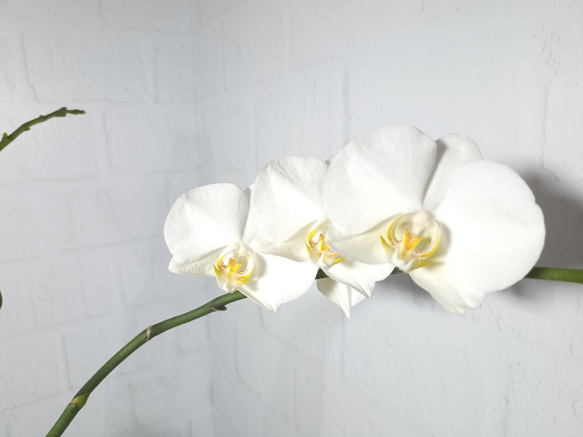 Белый — сорт-находка, потому что много, обильно и с упоением цветёт. Сейчас находится в начале очередного цветения. Ему не меньше 6 лет, поэтому растение давно покинуло пределы горшка.