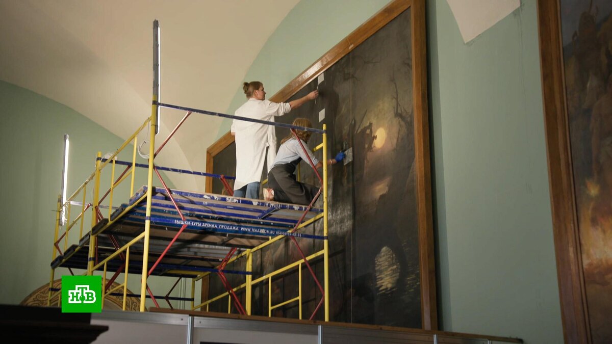 [ Смотреть видео на сайте НТВ ] У посетителей Исторического музея появился шанс увидеть, как реставрируют историческую живопись. Прямо в залах начались работы по расчистке двух масштабных картин художника Генриха Семирадского. Реставраторам нужно удалить загрязнения, которые скопились почти за 100 лет. Столько времени прошло с предыдущей реставрации. Тяжелая работа для реставраторов начинается с того, чтобы забраться под своды Исторического музея. Наверху еще сильнее концентрируется запах краски и специальных растворов, зато и ракурс необычный. Ирина Владимирова, реставратор: «Там смазаны, например, глазницы — картина не прописана, еще какие-то детали. Это плановость определенная, это прием художественный, и его не видно снизу. Его видно только там, когда залезаешь туда». Пятиметровые картины поражают своим масштабом, погружением в эпоху, проработкой элементов. «Похороны руса в Булгаре» и «Тризна дружинников Святослава после боя под Доростолом» написаны Генрихом Семирадским по заказу о