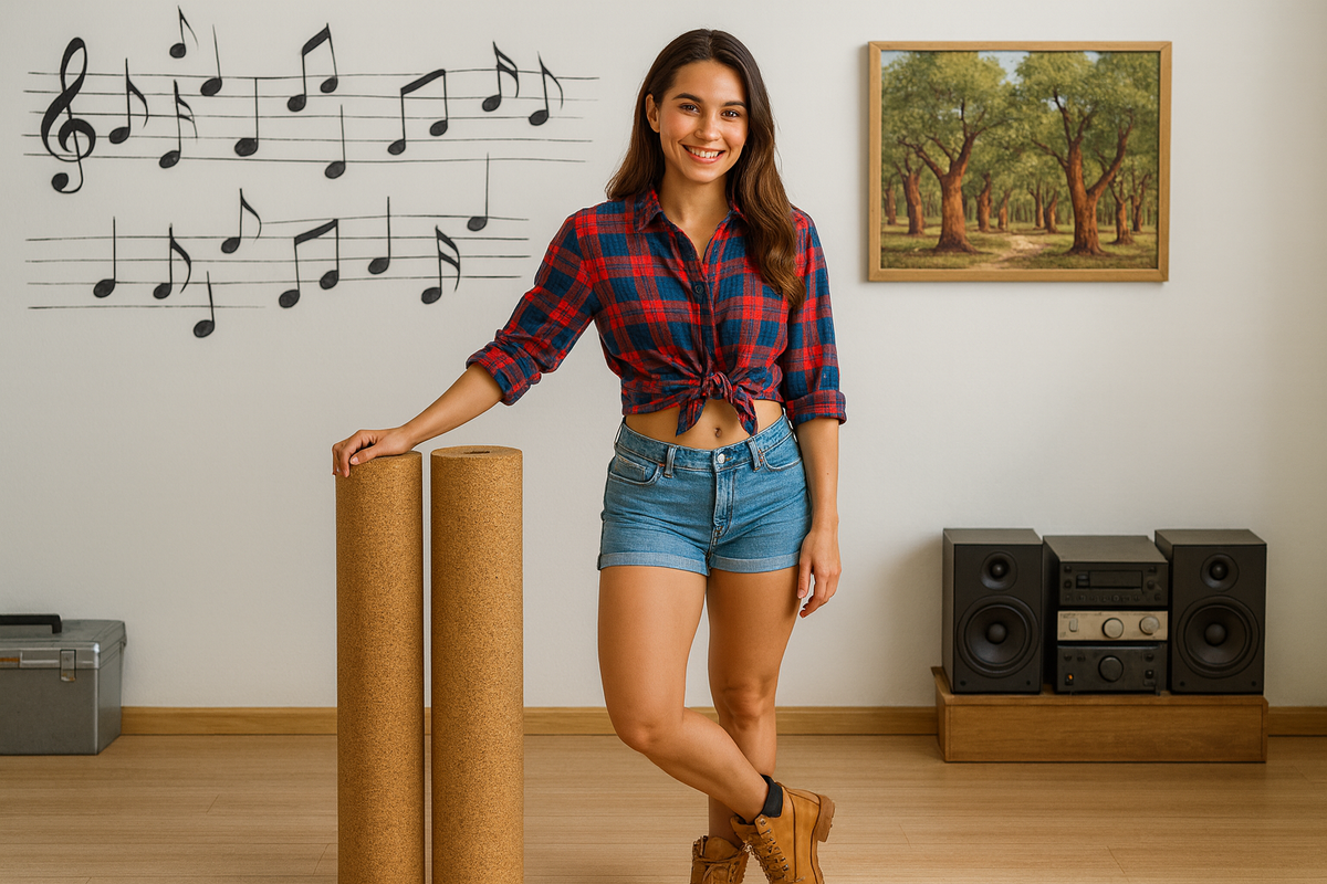 Пробка — упругая, с хорошими внутренними потерями. Тонкие подложки (2–3 мм) под «плавающие» системы обычно дают ΔLw порядка 16–20 дБ в зависимости от состава пола и испытательного стенда. Более толстые пробково‑резиновые маты под стяжку работают уже как слой плавающего пола и могут прибавлять к ΔLw ещё десятки дБ в составе тяжёлой конструкции. Внутри комнаты пробка сглаживает «стеклянный» щелчок ламинированных/SPC покрытий и делает шаг мягче, но не такой «каменный», как у приклеенной инженерной доски. Защита от влаги обязательна под древесными покрытиями.