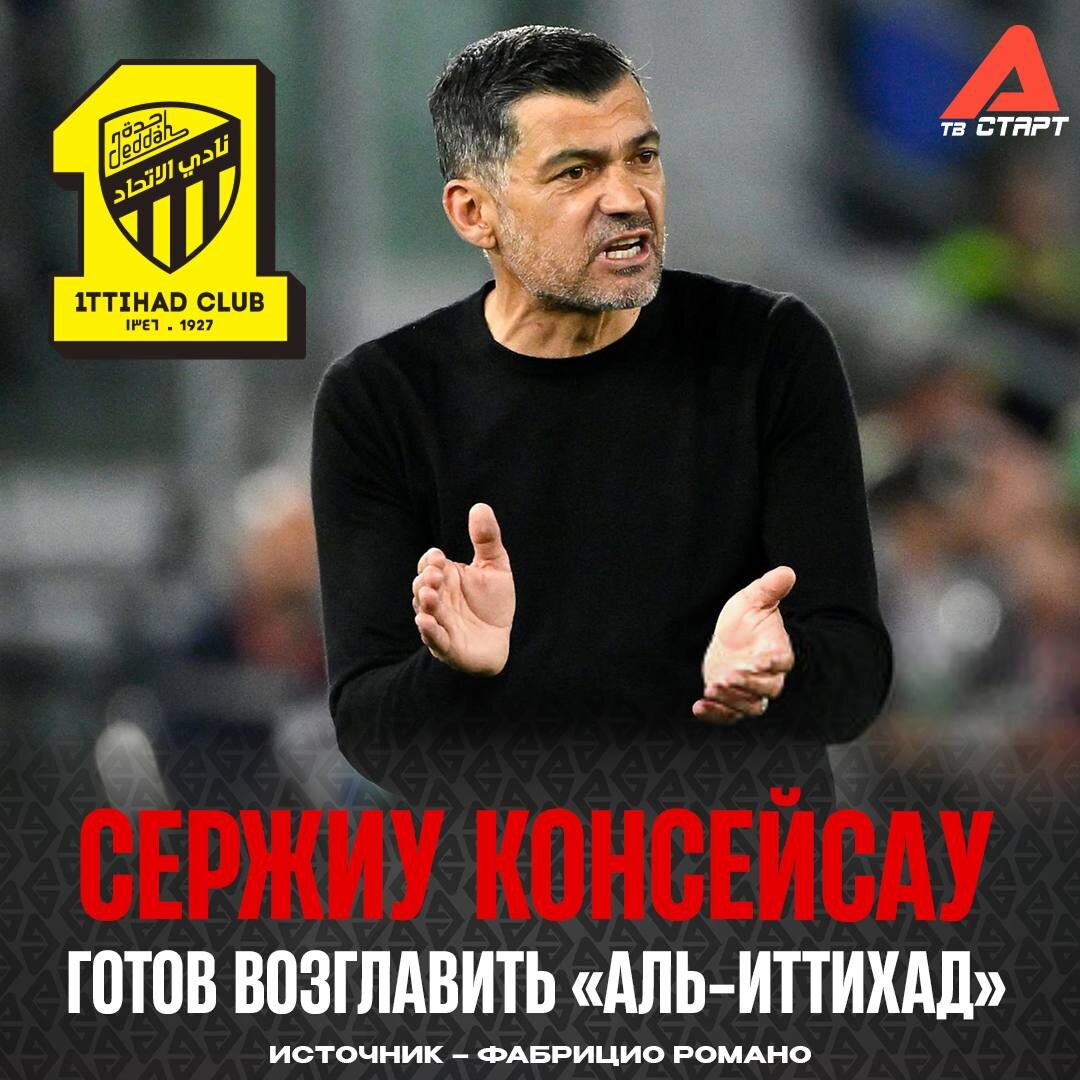 💣 «Аль-Иттихад» выбрал нового главного тренера? О конкретных переговорах с Сержиу Консейсау рассказал Фабрицио Романо. Саудовский клуб согласился принять экс-тренер «Милана» и «Порту»! Хороший вариант после ухода Лорана Блана? 😏 Подписывайся на ТВ СТАРТ в MAX📲