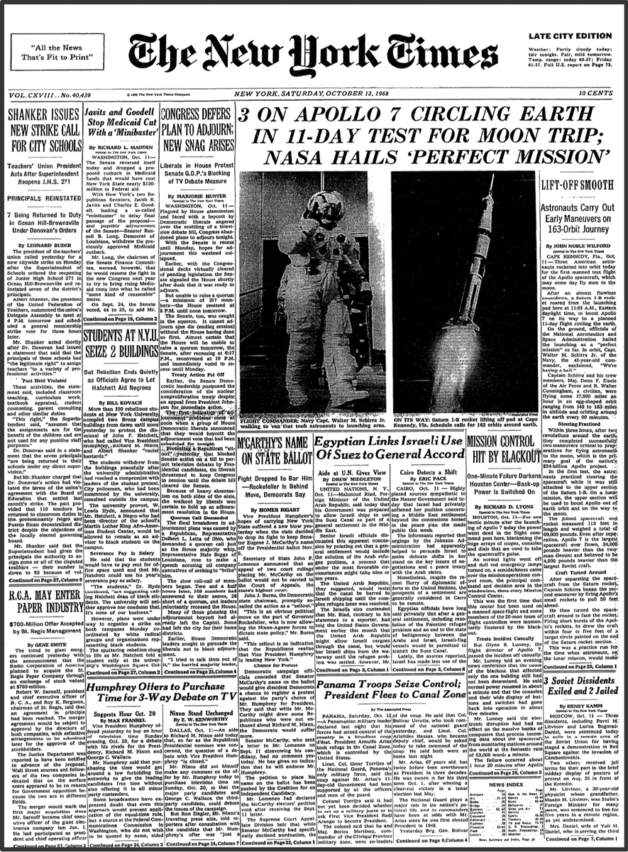 Решил вспомнить все полеты на Луну и к Луне (и не только). Привожу первые страницы газеты Нью-Йорк Таймс, которые освещали старты пилотируемых Аполлонов.