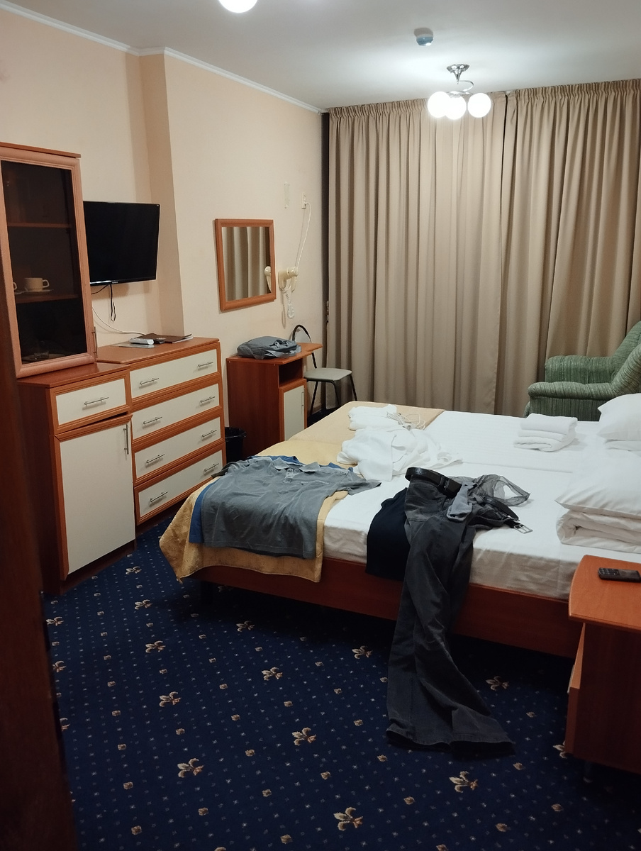 Наш отпуск проходит со 2 по 11 октября в санатории Магадан недалеко от Сочи. Мы вылетели днем из Нижнего Новгорода и прилетели в Сочи вечером, а через полчаса закрыли аэропорт до 7 утра. Нам сильно повезло. Такси домчало нас до санатория Магадан. Ночной Сочи красивый, весь в огнях. Дороги петляют по горам, водитель был со стажем, местный, было не страшно. Мы заселились в двухкомнатный номер. Еще в нашем номере есть коридор, отдельный душ и туалет. Очень просторно и удобно. Из окон видно море. Воду в санатории можно пить из-под крана. Мы кипятим чайник, нормальная вода. Корпус старый, ремонт не помешал бы. Вся территория санатория гористая, расстояния большие. Множество разных растений собрано здесь, некоторые подписаны. Видно, что люди с заботой относятся к ним и хорошо ухаживают. На территории живут белки. Они шустрые, я попробую успеть одну сфоткать. Первый раз я видела белку черного цвета. Пока что мы отдыхаем от перелета и стресса, много спим и вкусно кушаем. Здесь организован ш