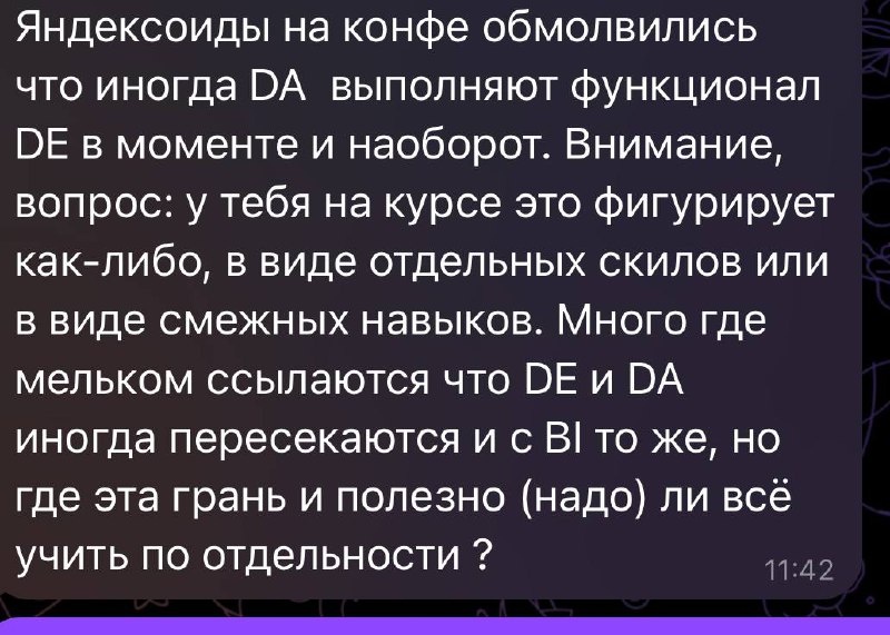 Грань между DA и DE бывает сильно размыта, мне ли это не знать если у меня позиция называется аналитик-инженер 😅